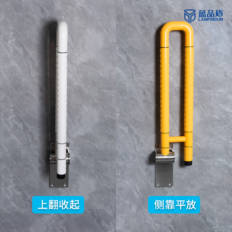 藍品盾PT-WY-01款U型上翻無障礙扶手雖然原本是為馬桶設計的,但其U型設計和上翻功能也適用于洗手盆旁邊。它可以靠墻折疊,非常適合小空間或洗手盆太靠墻、位置不夠的公廁使用。