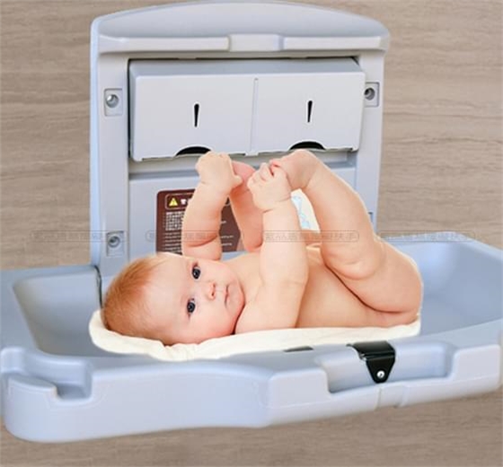 藍品盾嬰兒護理臺是貼心的母嬰專用設備,有壁掛式和可折疊的特點。產品采用抗菌HDPE材料制造,有效防止細菌污染,用料厚實,確保寶貝安全,媽媽放心!