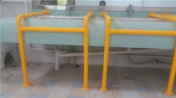 下面的圖片就是我們的業(yè)務(wù)同事高小姐的客戶劉先生發(fā)來(lái)的安裝好后的效果圖,這個(gè)項(xiàng)目是喀什地區(qū)殘聯(lián)康復(fù)中心兒童衛(wèi)生間里的尼龍扶手,亮麗的黃色,看起來(lái)很顯眼也很安全,工人安裝的也很好哦,一排排的,很整齊,很壯觀呢,有木有。