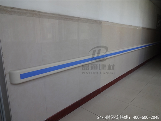 品通防撞扶手的PVC面板采用pvc原材料制成,厚度為2.0MM,色澤均勻,無明顯色差,防腐抗菌。內芯采用原生優質鋁錠擠出成型,鋼度滿足支撐和防撞的要求,造型簡潔,牢固可靠,可以受到一個大于800N豎向集中力時,無絲毫松動,真正起到防撞功效;目前主要應用于醫院、養老院、福利院等公共場所。